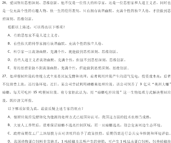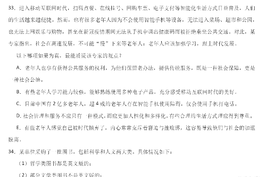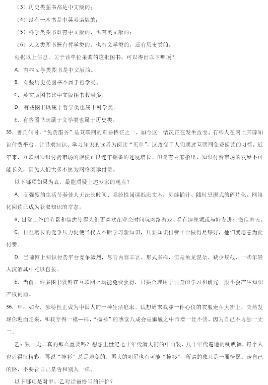 三、逻辑推理:第26——55小题,每小题2分,共60分。下列每题给出的A、B、C、D、E五个选项中,只有一项是最符合题目要求的。
